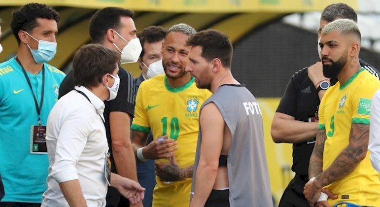 Na Inglaterra, o The Sun, que tradicionalmente aposta em manchetes polêmicas, foi direto no assunto: Brasil x Argentino é suspenso depois que agentes de saúde entraram em campo para deportar astros da Premier League", escreveu o veículo, citando o fato de os quatro argentinos que descumpriram o protocolo sanitário atuarem no futebol inglês.